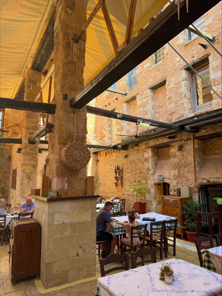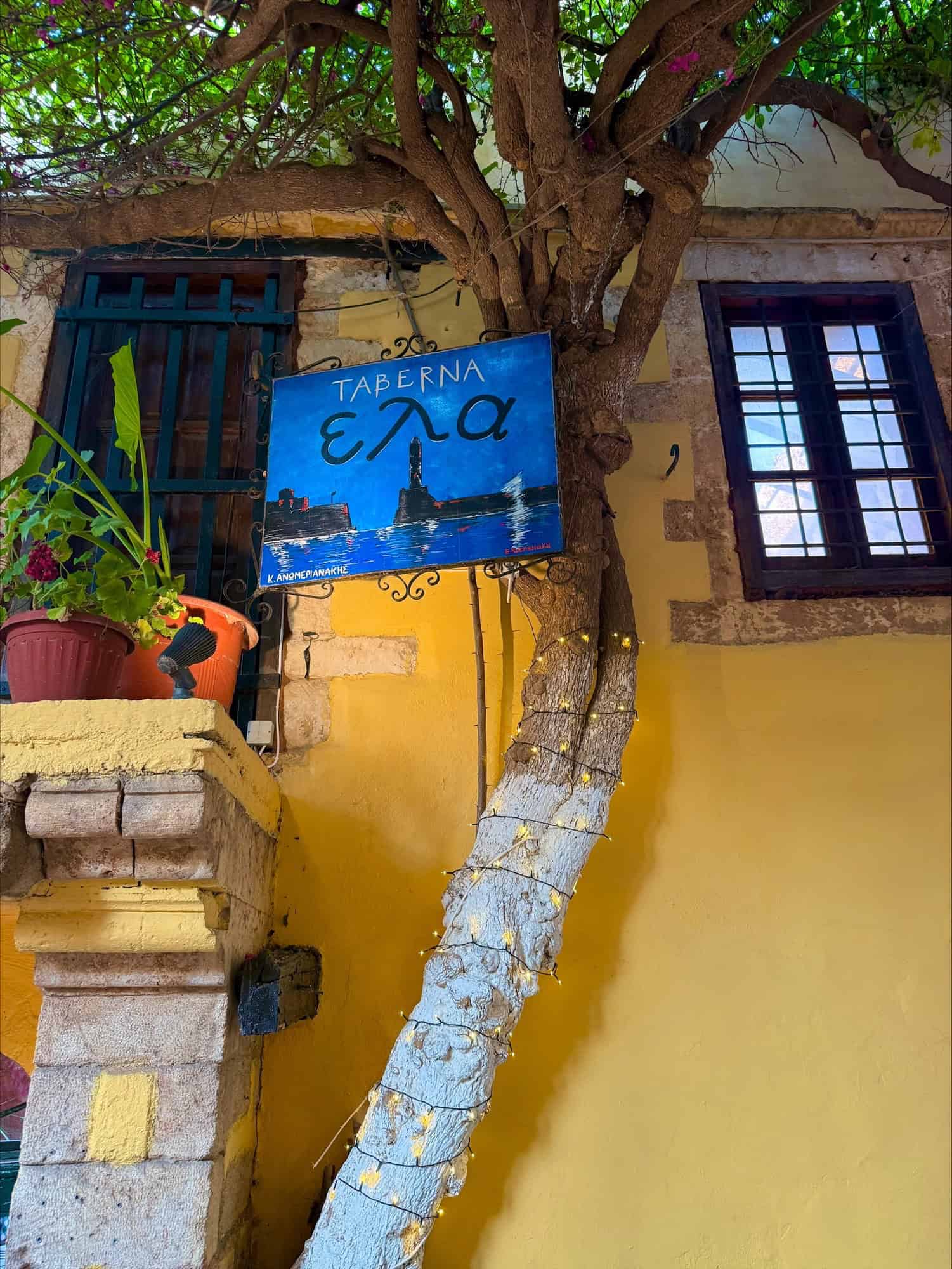 Rustic charm meets modern touches here. The roofless building gives it a unique vibe, and it’s cosy yet spacious. Ela do a brilliant meze platter, and prices are reasonable. Bonus points for the quirky kids’ toilet, which my daughter adored making its a great family restaurant in Chania.