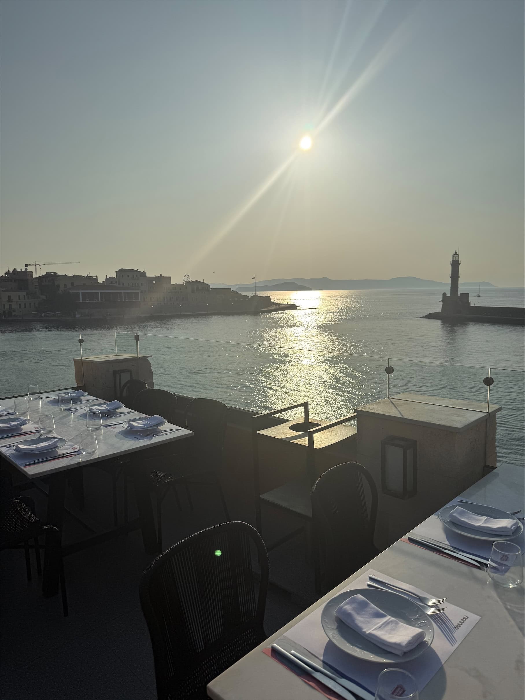 Pallas was a real highlight for us. We booked for 7pm and caught the sunset over the harbour — this was one of the best sunset views in Chania for us. The food is modern, seafood-led, and beautifully presented. Staff were super knowledgeable, especially around pregnancy-safe dishes. Their complimentary dessert (like a molten Caramac!) was unreal, and the cocktails were fab too. It’s a little pricier, but totally worth it.