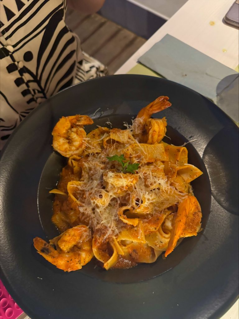 Right next door, Kertos offered more traditional Greek dishes done simply but brilliantly. The salmon papardelle was rich and tasty, and even our daughter loved her mac and cheese from the kids’ menu. We watched the sunset from our table, which made the meal even more special.